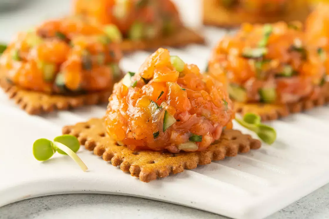 - Экзотичный Тар-Тар из Лосося, Киви и Печеного огурца