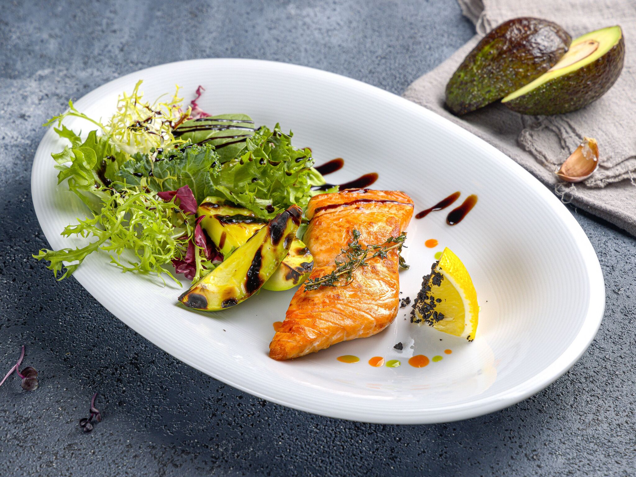 Стейк из лосося с жареным авокадо - это искусное танго страстей, где нежный лосось обволакивает ваш вкусовой рецептор, а жареный авокадо добавляет нотки загадочности и утонченности. Это блюдо как поэзия вкуса, где каждый кусочек раскрывает всю глубину морского мира и сладость тропических лесов в одном удовольствии.