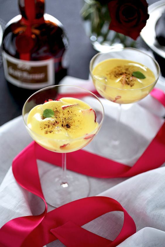 - Нежный сабайон с изысканным шампанским и свежей клубникой
