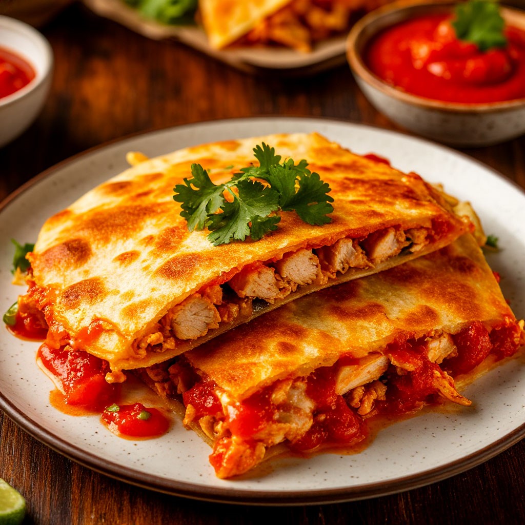 • Сочная сырная кесадилья с курицей и острым соусом