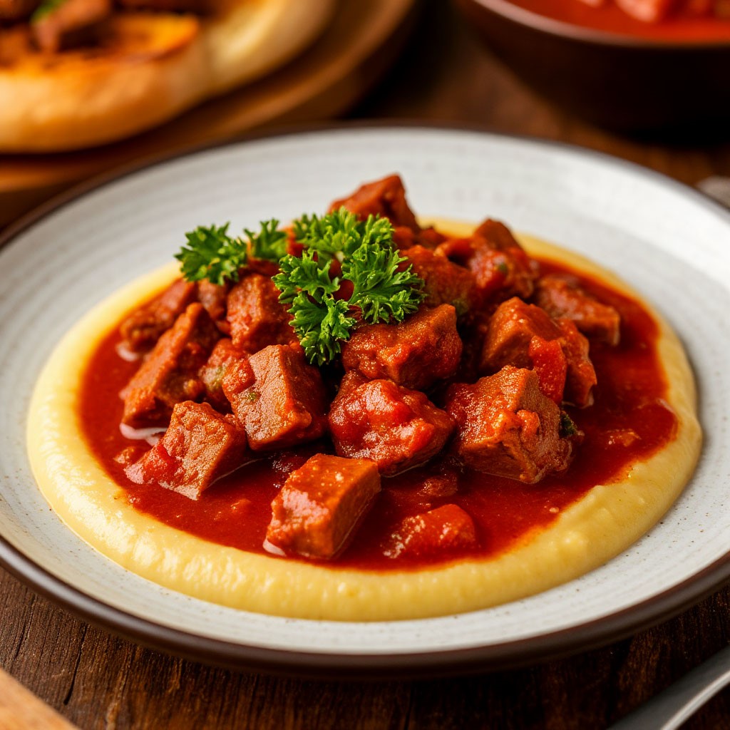 2. Гуляш с пюрешкой «из детства»: геометрия уюта.