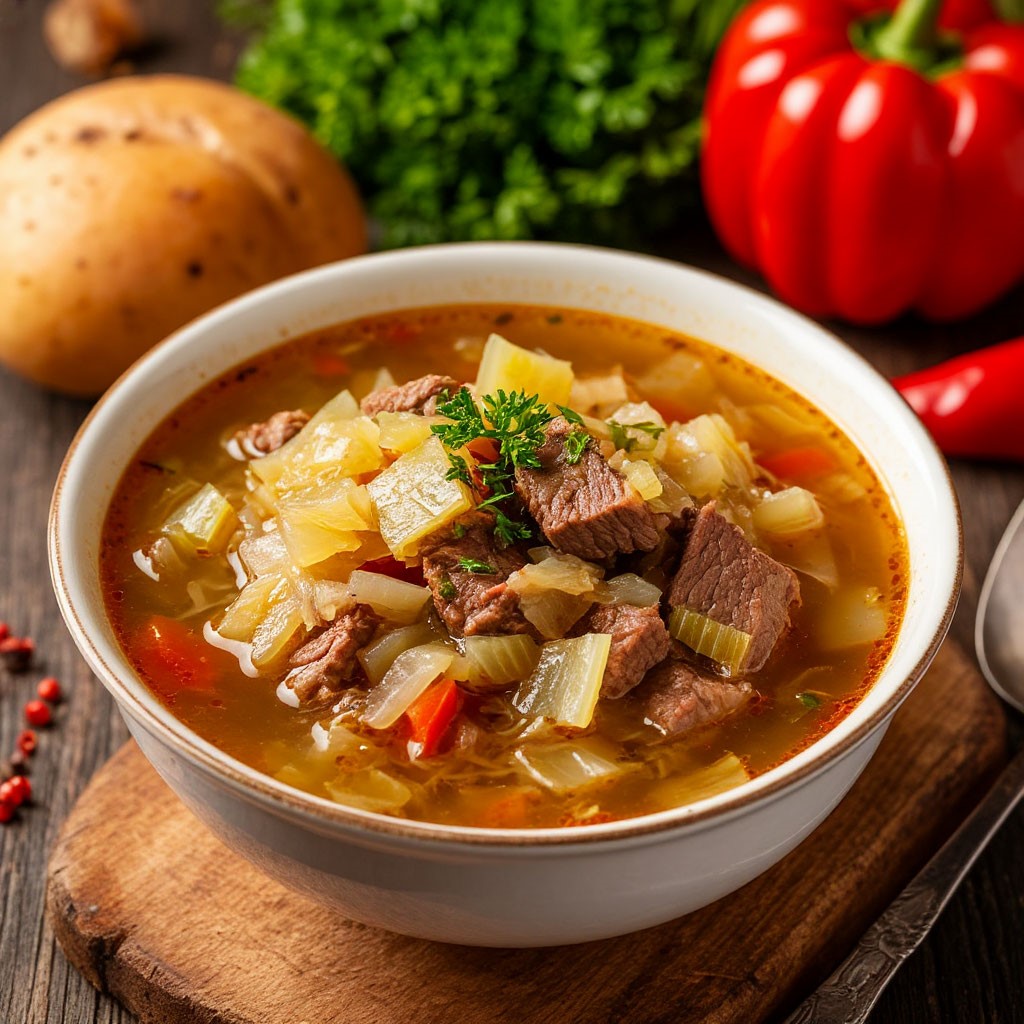 Это блюдо — проект, требующий времени и дисциплины. Мы начнем с возведения «фундамента» — мощного, вываренного бульона на говядине на кости, где перец и коренья создают глубину аромата. Вы научитесь балансировать характерную кислинку капусты с плотностью мясной основы, превращая традиционный суп в сложную многоуровневую композицию. Это урок о том, как простые ингредиенты и правильный температурный режим создают настоящий гастрономический монолит.