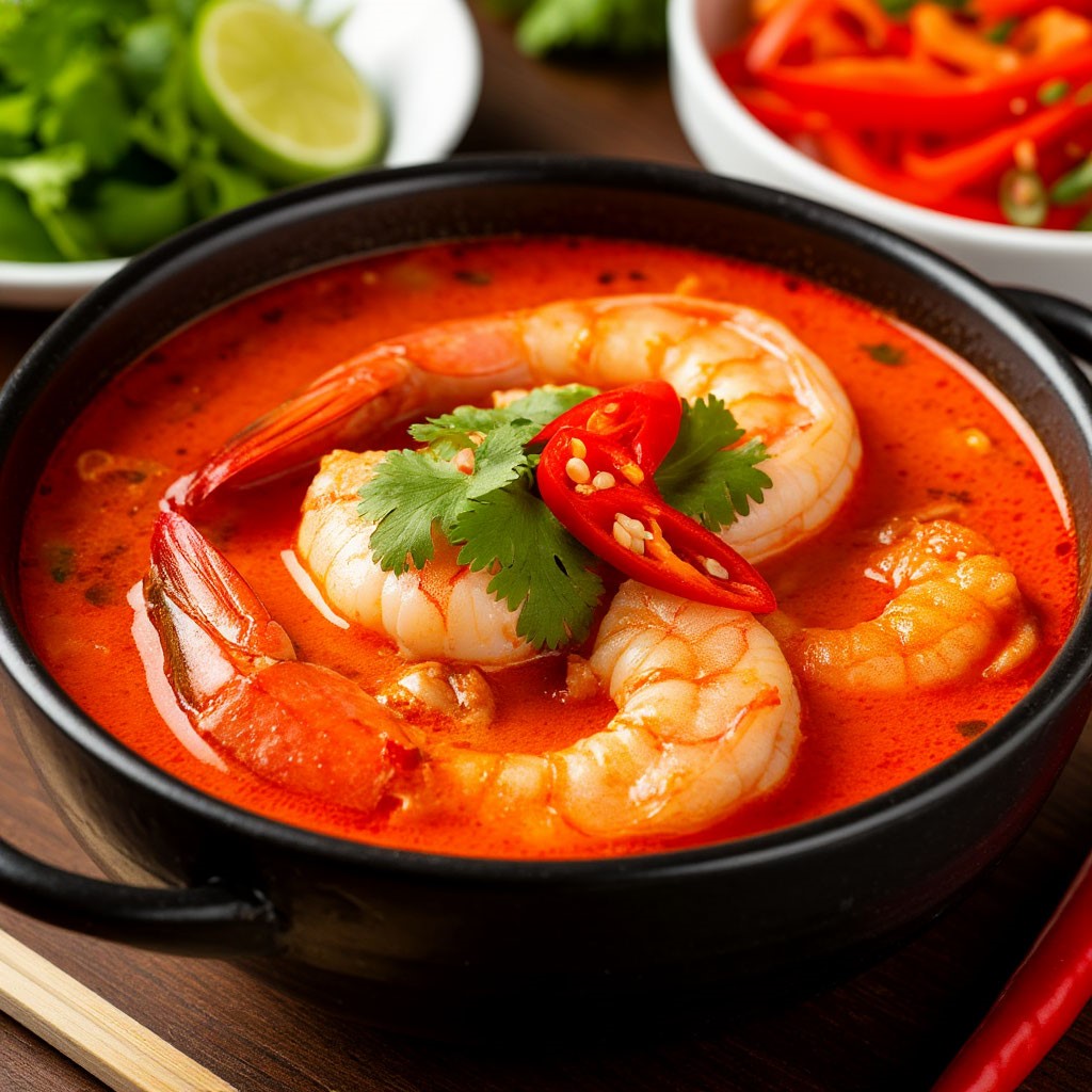 Это блюдо — сложный инженерный проект, основанный на балансе четырёх стихий: острого, кислого, соленого и сладкого. Мы начнем с возведения «фундамента» — ароматного бульона, пропитанного энергией лемонграсса, галангала и листьев кафир-лайма. Вы научитесь интегрировать морепродукты так, чтобы они сохраняли свою нежную структуру, становясь яркими акцентами в этой огненной композиции. Это урок о дисциплине специй и глубине паназиатского вкуса.