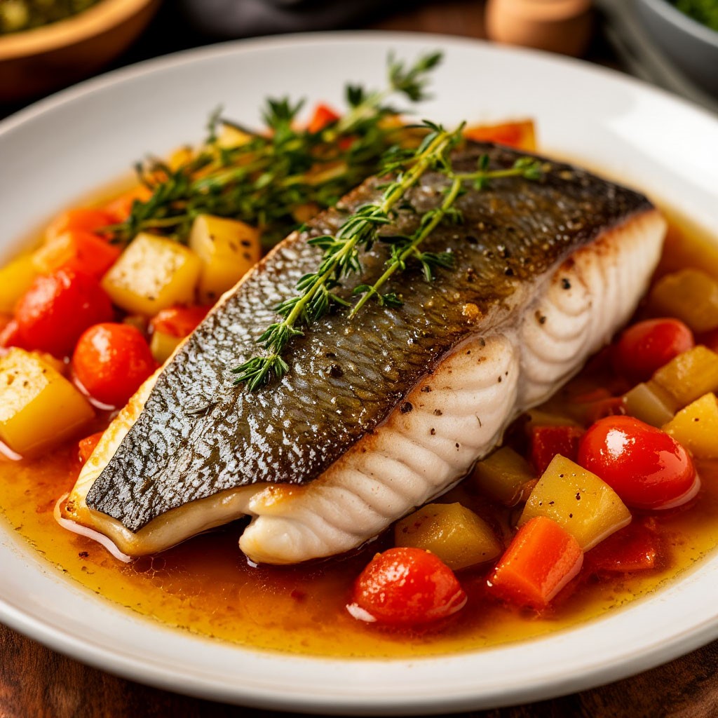 Главное блюдо вечера — это работа с тончайшими нюансами. Вы освоите технику запекания рыбы в парах яблочного сидра, что придаст нежному филе сибаса едва уловимую фруктовую кислинку и невероятную сочность. Мы дополним композицию геометрией овощей, которые в процессе томления пропитаются яблочным ароматом. Это мастер-класс по созданию «прозрачного» и легкого вкуса, где море встречается с садом.