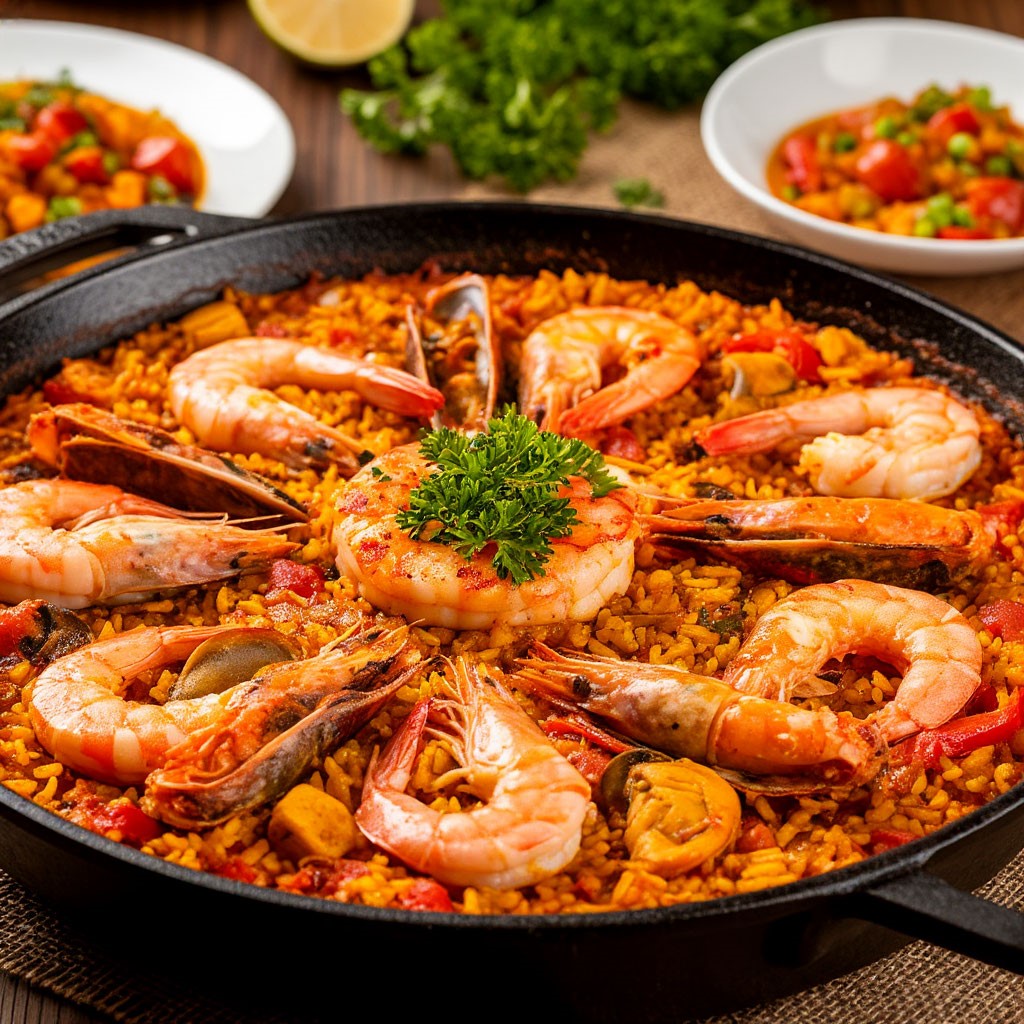 2. Паэлья с морепродуктами: архитектура золотого риса. Главное блюдо вечера — это сложный инженерный проект в одной сковороде. Мы раскроем секреты создания идеального «фундамента» из риса, пропитанного шафраном и морским бульоном. Вы освоите технику работы с морепродуктами, чтобы каждый элемент — от креветки до мидии — сохранил свою сочность и стал частью единого гастрономического ансамбля. Это искусство управления огнем и временем ради достижения того самого насыщенного южного вкуса.