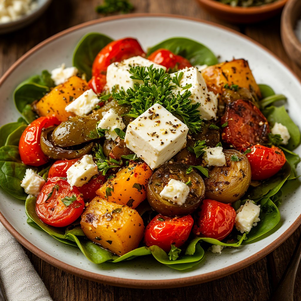 1. Салат с печеными овощами и сыром Фета: геометрия земли. Мы начнем с изучения трансформации простых продуктов. Вы узнаете, как запекание концентрирует природные сахара в овощах, превращая их в яркие архитектурные элементы салата. Мы научим вас выстраивать баланс между мягкостью томленого перца или баклажана и кремовой, соленой текстурой феты. Это урок о том, как правильная термическая обработка создает сложный рисунок вкуса в самой лаконичной закуске.