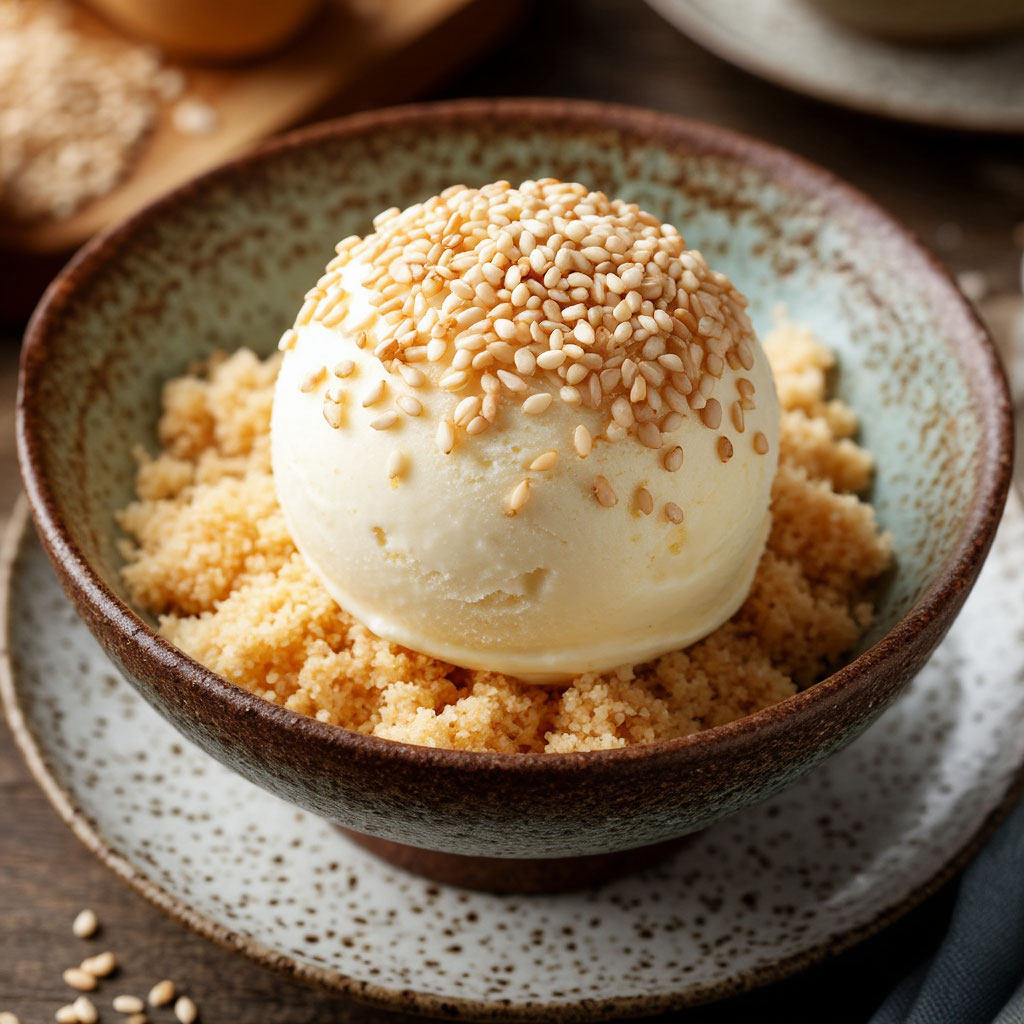3. Ванильное мороженое с кунжутным топпингом. Финал, где нежность бросает вызов текстуре. Вы приготовите ванильное мороженое не как простой десерт, а как чистый, бархатный холст. Анастасия покажет, как раскрыть истинный стручковый ванильный аромат. И тогда на сцене появится топпинг — хрустящая, почти драматичная крошка из карамелизованного кунжута и тонких крекеров, которая контрастом оттеняет холодную сливочность. Это десерт-медитация, где важно каждое движение ложки через разные слои.